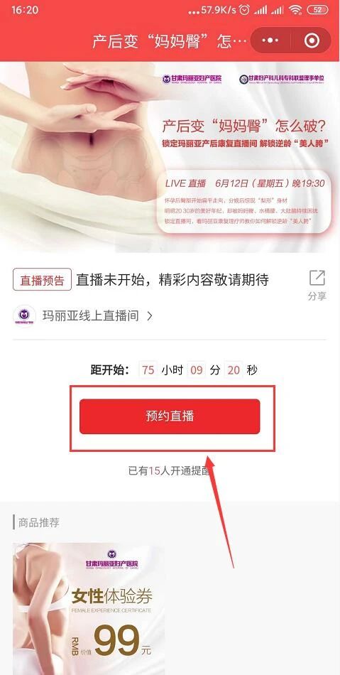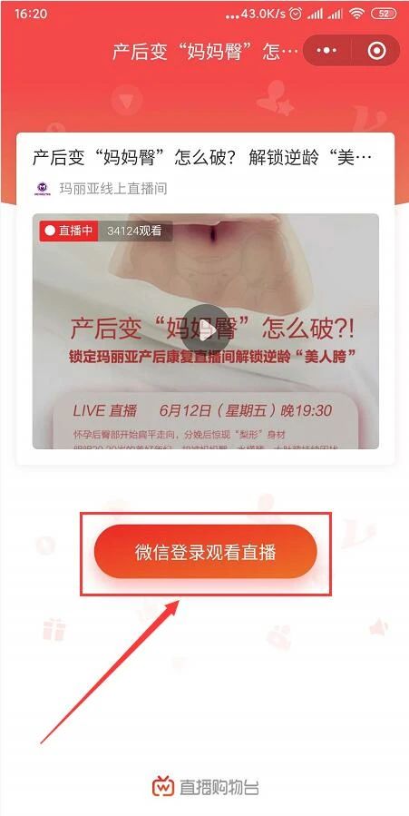 在当晚开播前5分钟会有微信消息提醒您,直接点击链接,进入直播间。