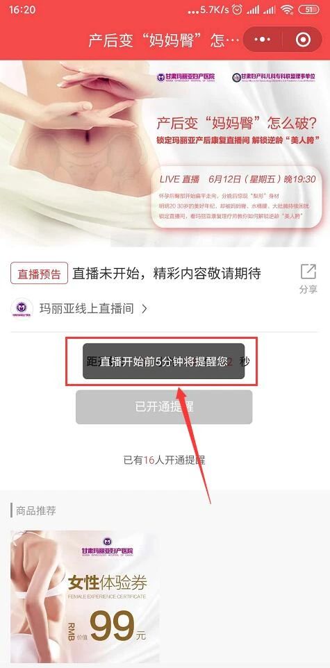 当您预约成功后,会弹出“直播开始前5分钟将提醒您”的提示。