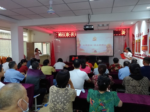 参加主题活动的党员欢聚一堂,共同合唱《没有共产党就没有新中国》、《歌唱祖国》两首经典红色歌曲,用唱红歌的形式向党的99周岁生日献礼,表达了党员对党和祖国的无限热爱,展示了新时期共产党员的担当作为、凝心聚力、团结奋进的精神追求和时代风貌。