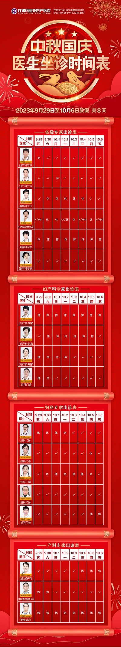 喜迎中秋 欢度国庆|医生坐诊时间表