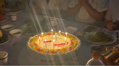 随着悠扬的《祝你生日快乐》前奏如潺潺溪流般淌入耳畔,两只大大的生日蛋糕被送进了会场,现场的院领导举杯送上诚挚的祝福,在温暖的烛光映照下,将那一刻的欢乐推向了高潮。
